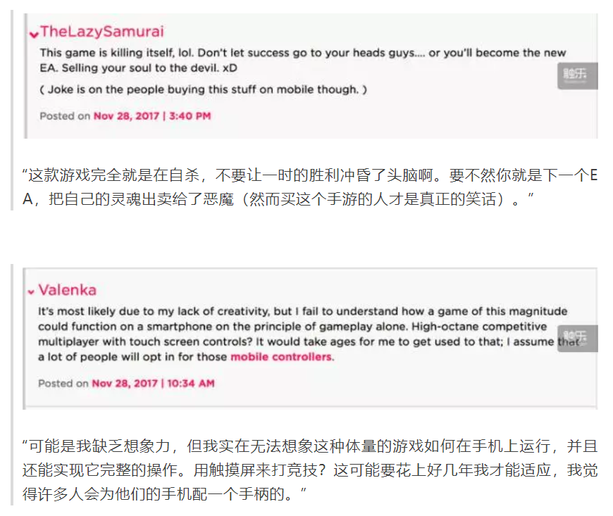 可当“腾讯买下《绝地求生》手游改编权”的消息传到欧美时,也就是全球玩家爱上《PUBG Mobile》4个月以前,欧美游戏用户却从一开始就不看好它。在美国著名游戏测评网站IGN上,充斥着大量类似的言论:“手机玩射击游戏体验一定很糟糕”“买手游改编权的公司是傻了吗”。