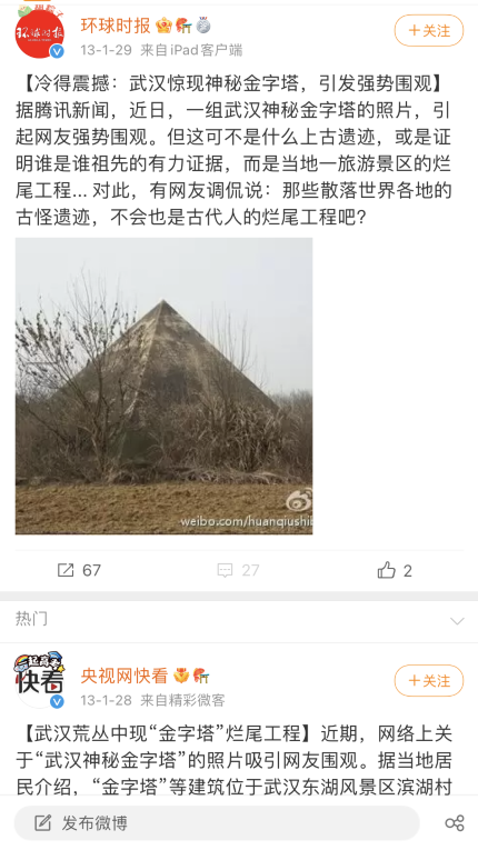 2013年,一组名为“武汉神秘金字塔”的照片,借着网络的力量迅速传播。