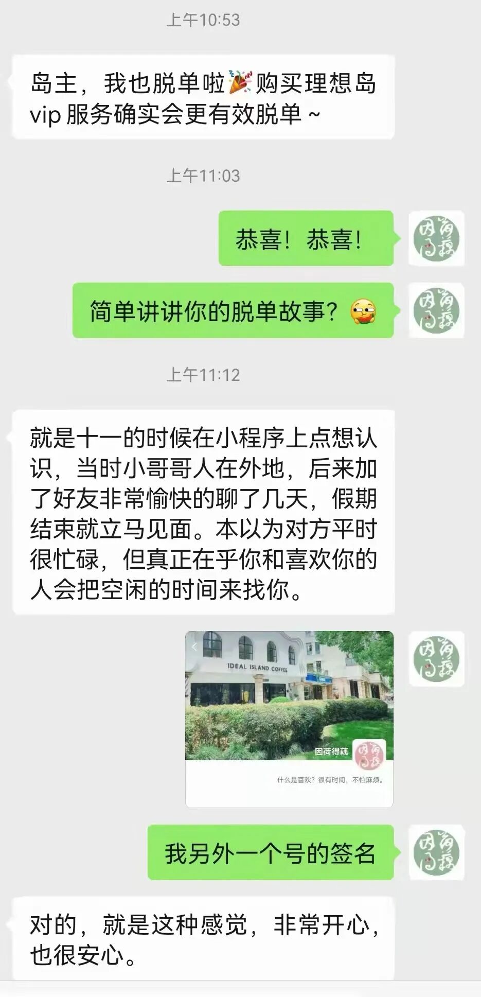 #理想岛脱单故事 买了三个月会员,结果,和第一个认识的男生,即将领证结婚。