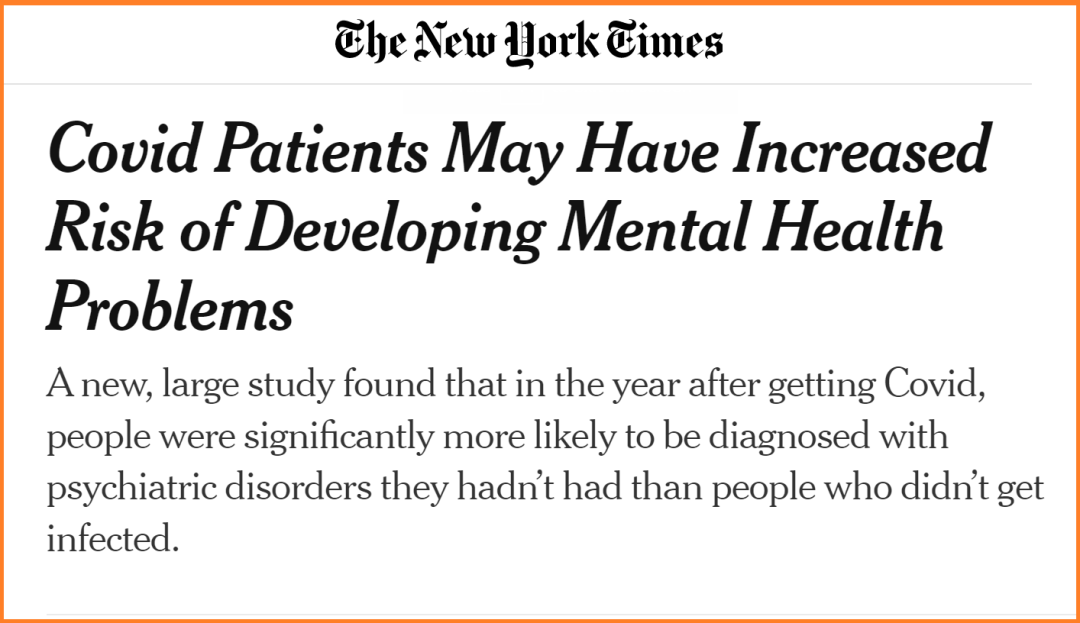 中重症病例罹患任意精神疾患的风险增加了3.43倍;