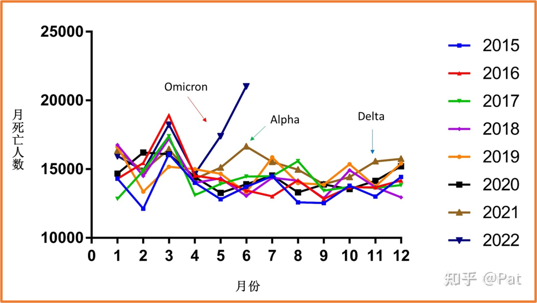 这里想特别指出的是,之前每月最多死亡人数的记录来自新冠前。