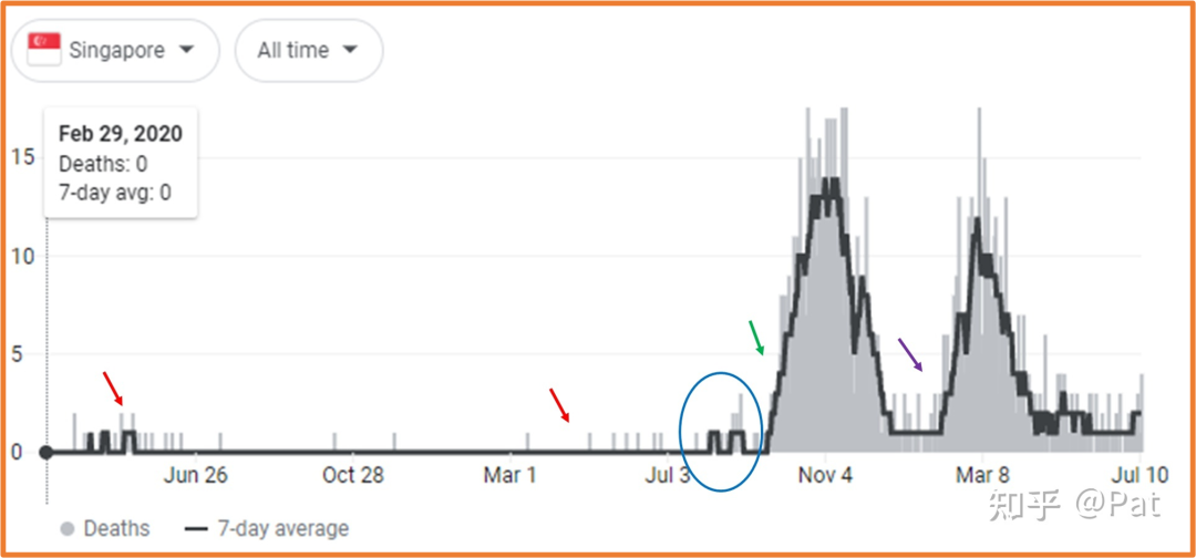 中间的红色箭头即2021年4月,新加坡官方没有报导大规模疫情,但产生了超过4.2标差的死亡数字。