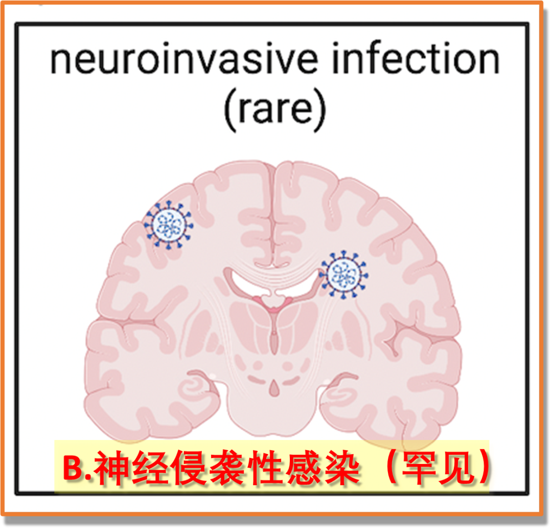话说,这篇发表在《Cell》子刊的Perspective,内容其实跟咱大半年前搬运过的某预印本其实比较重合,那时候岩崎老师和Monje老师认为新冠病毒感染后的脑损伤主要有三种机制,然后主要研究了其中的“隔山打牛”机制(或者用黑话来说就是病毒感染导致远端炎症反应的机制)~大半年之后,作为一篇堂堂《Neuron》的Perspective,把脑损伤的机制扩充到了六种(所以含焦量越来越高了…)~“新冠病毒感染导致的神经系统损伤至少有以下6种机制: