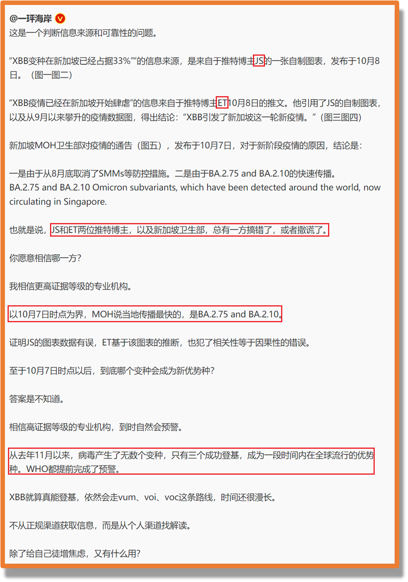 哇哈哈哈哈~看完上面这段蛛丝马迹,现在有请这位财经博主来品鉴品鉴:到底是咱这边“搞错了,或者撒谎了”呢? 还是作为“更高证据等级的专业机构”的新加坡卫生部“搞错了,或者撒谎了”? 而且啊……"BA.2.10 is also referred to as XBB""BA.2.10 is also referred to as XBB""BA.2.10 is also referred to as XBB" 这尼玛像是堂堂一国卫生部说得出口的胡话吗??? 本人知识星球暂定2022年10月16日重新上线~ 以及,本人微博(终于)重开