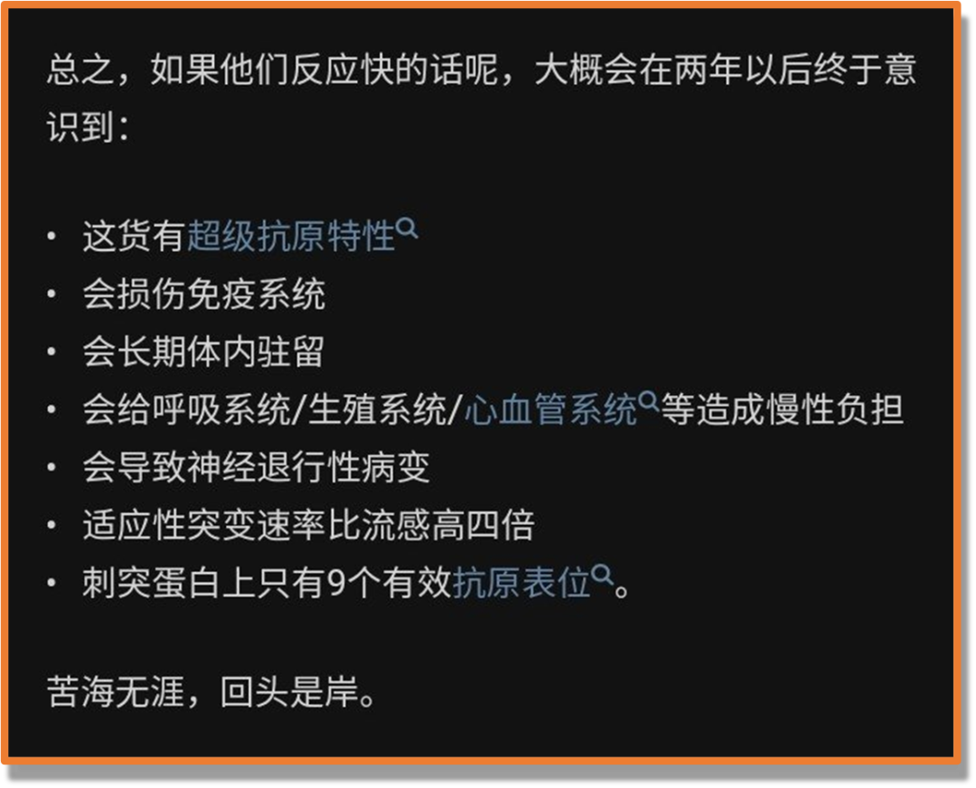 ↑ 超级抗原基序、免疫系统损伤、体内驻留、多器官慢性疾病负担、神经退行性病变、反超流感的突变速率……以上都是2021年9月份的集中贩焦。
