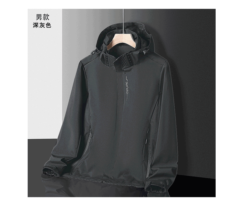 我们看一下这款冲锋衣的设计,简约的户外风,运动感十足。