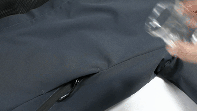 即使是在内兜的外侧洒水,而衣服的内侧一点水渍都没有,完全没有被水渗到的痕迹,内兜里放的纸巾也是干爽的。