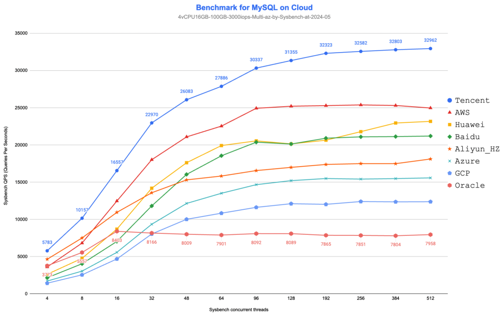这里选取了阿里云、华为云、腾讯云、AWS、Azure、Oracle Cloud、Google Cloud的托管MySQL服务(RDS MySQL)作为测试对象。测试实例实例规格满足如下条件: