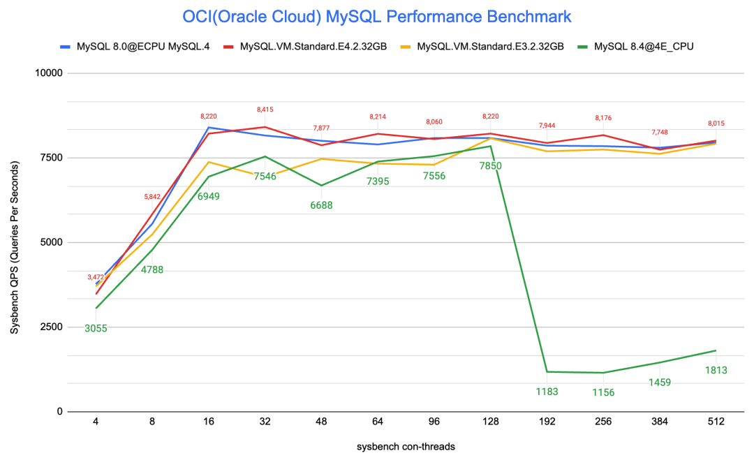 第八名是Oracle Cloud;这是首次测试Oracle,所以也对MySQL@Oracle Cloud做了比较细致的测试,包括amd/intel规格,OCPU和ECPU规格等。