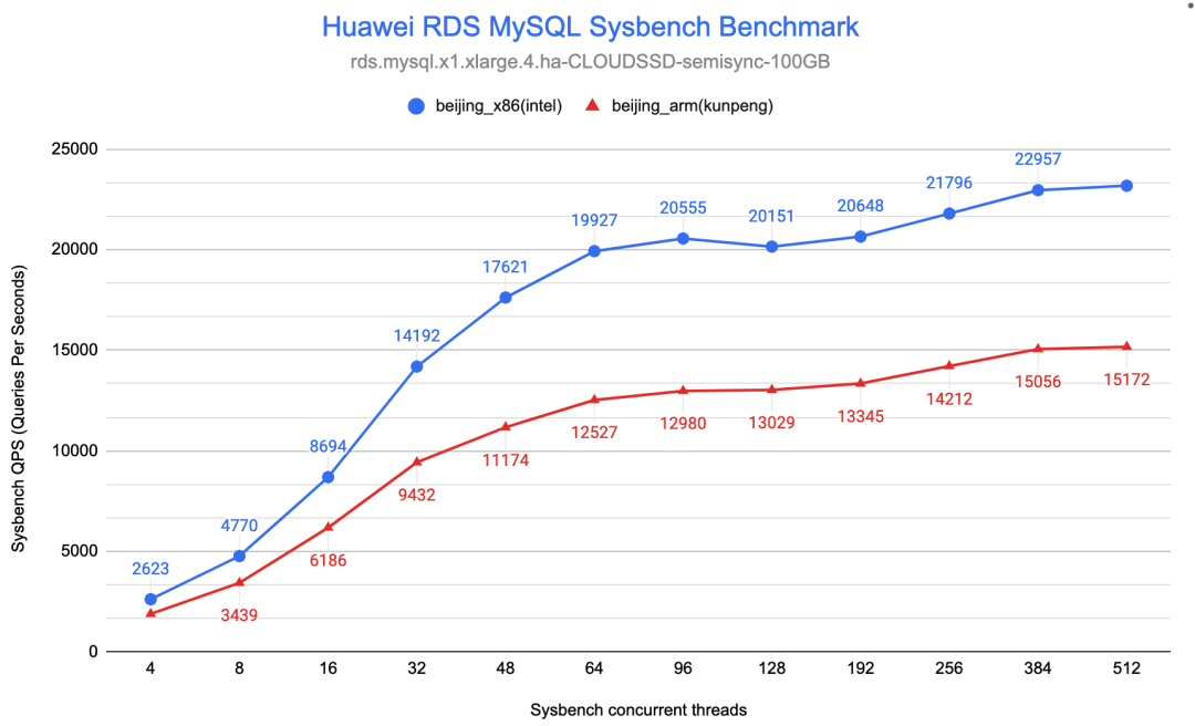 本次也额外对华为云Kunpeng(ARM)实例进行测试,其性能约为Intel规格的50%~70%;如果需要使用国产架构,则可能要考虑其在性能上的让渡: