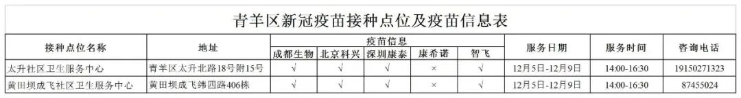 青羊区新冠疫苗接种点位安排