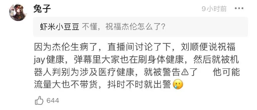 祝福周杰伦健康,被平台警告内容含医疗康复。