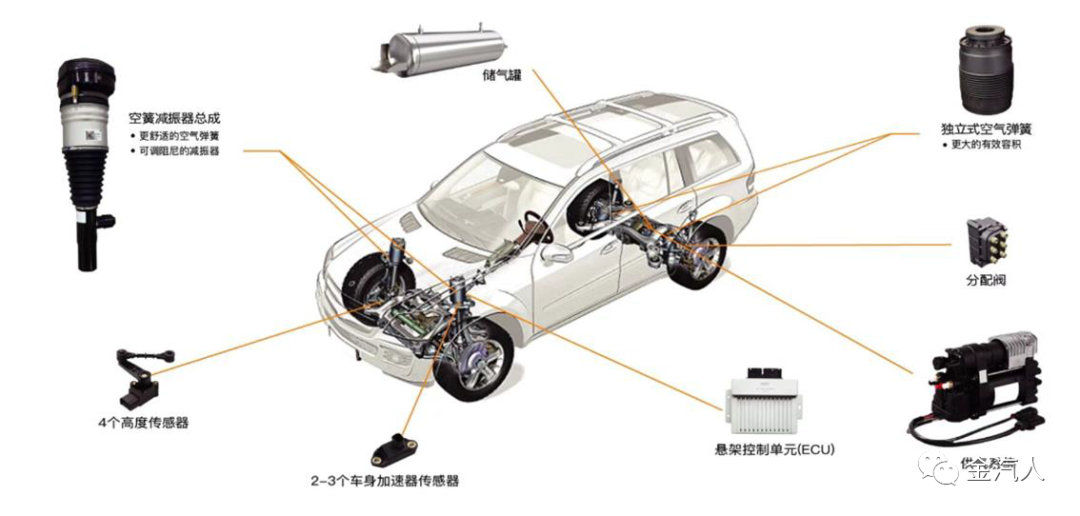 依托公司在线控刹车IBS研发过程中形成的机械、电控、软件能力以及底盘调校能力,结合公司在橡胶方面和真空泵方面的多年经验积累,公司迅速开发空气悬架系统项目。空气悬架是指采用空气弹簧并搭配可调阻尼减振器的悬架系统,相对于传统的钢制悬架系统来说,空气悬架的优势在于能够自发调节弹簧刚度与减振器阻尼系数,以满足不同情形下对于车辆操纵性或舒适性的诉求。公司空气悬架系统产品包括集成式供气单元、空气弹簧、高度传感器等。