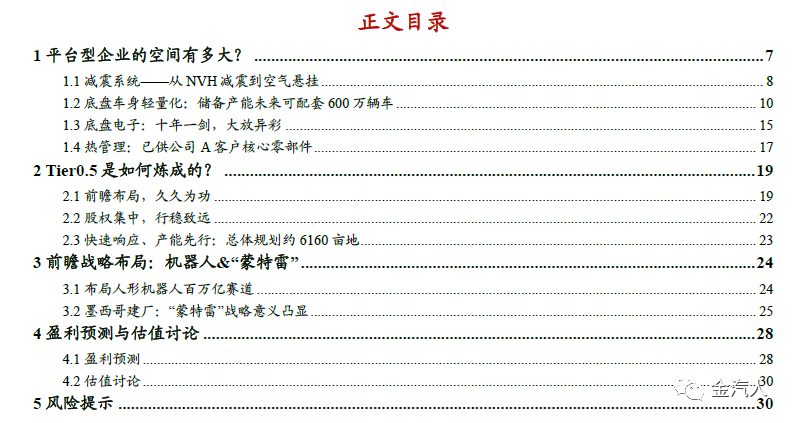 单车价值量——不断拓展业务边界:Tier0.5模式可以快速响应客户需求,公司asp已达到3万元,且拓展思路清晰——传统赛道向大赛道、高技术附加值拓展:传统车的减震系统、内饰件——电动车的轻量化底盘系统、热管理系统——智能车的汽车电子、空悬、IBS等。