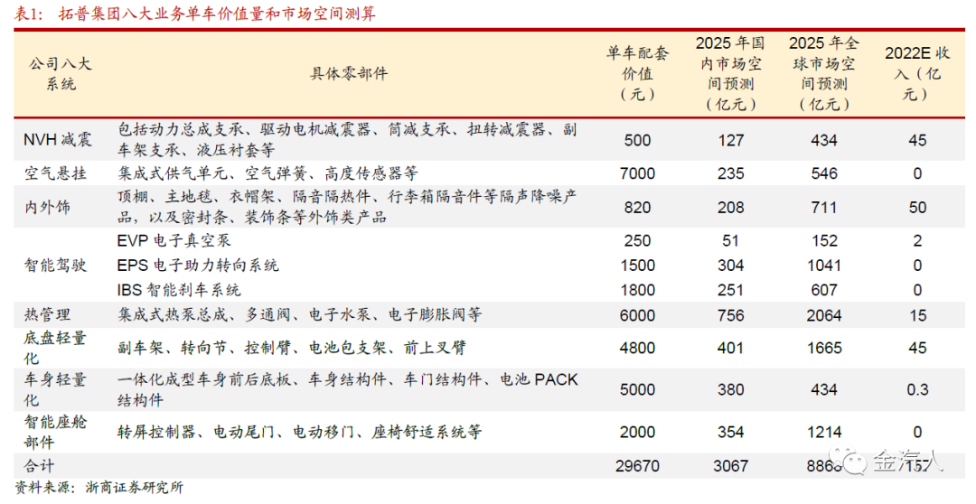 我们测算到2025年拓普集团3万元asp的产品对应国内/全球分别约3064亿元和8869亿元的市场。