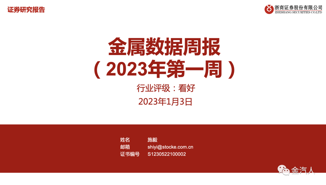 本文源自2023年1月3日浙商证券《金属数据周报(2023年第一周)》。