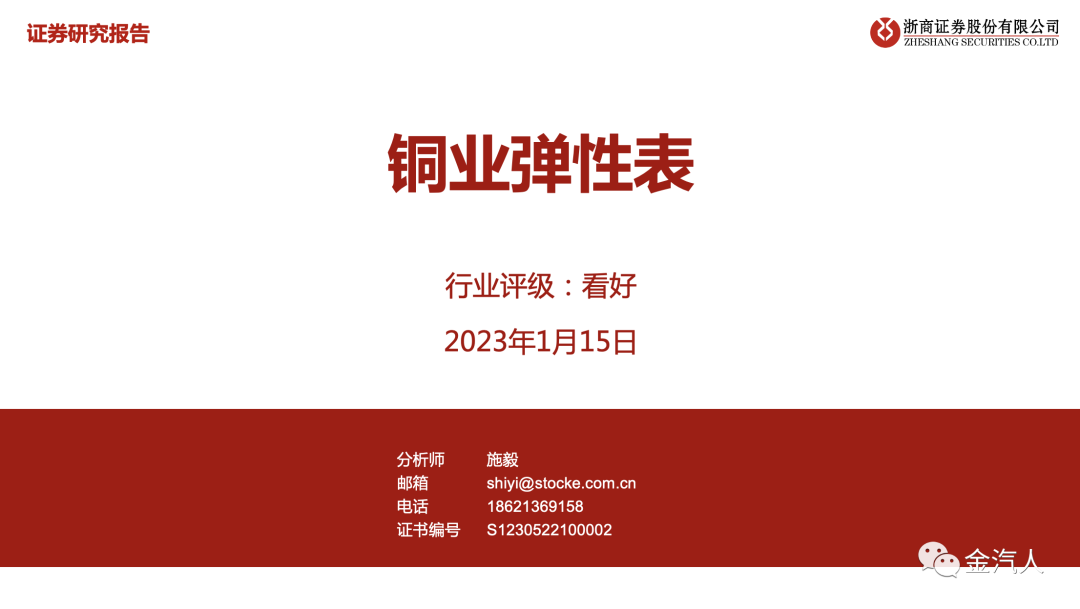 本文源自2023年1月15日浙商证券《铜业弹性表》。