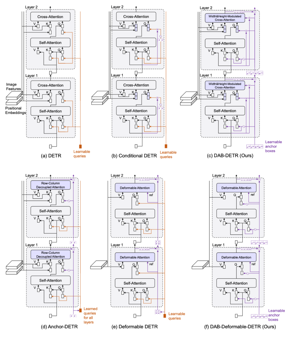 那么很自然的,我们意识到,要为 cross attention 提供更好的位置先验,提供更好的 roi region。很自然的,传统两阶段检测器中的 anchor box 可以引入到模型中作为位置先验。