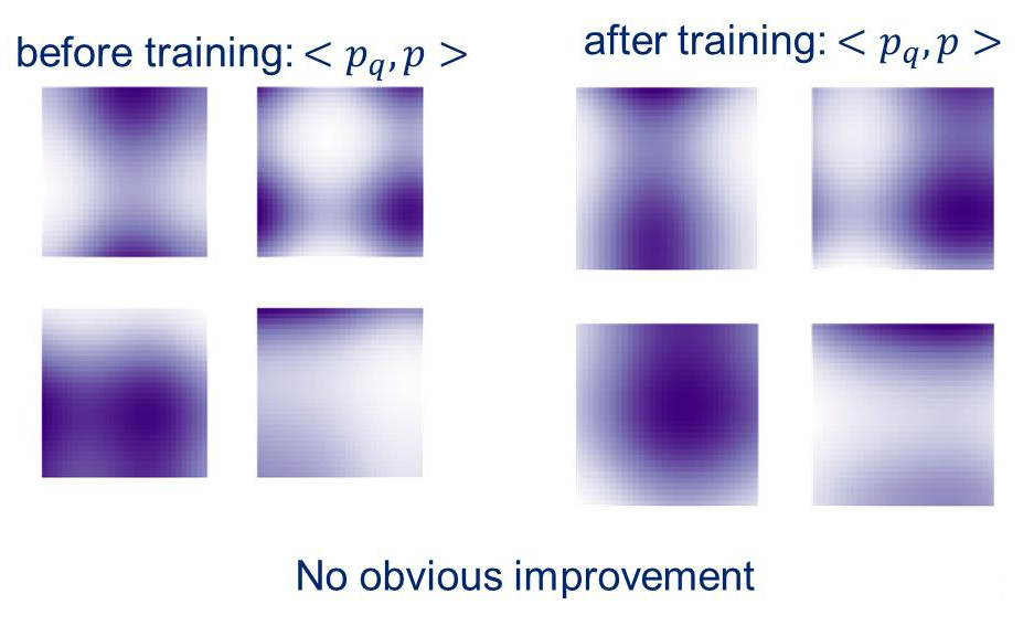 如图,训练前后的 learnable query 产生的位置注意力图仍然存在多模式、退化解等现象,并不能为 soft roi pooling 提供 roi 的信息。