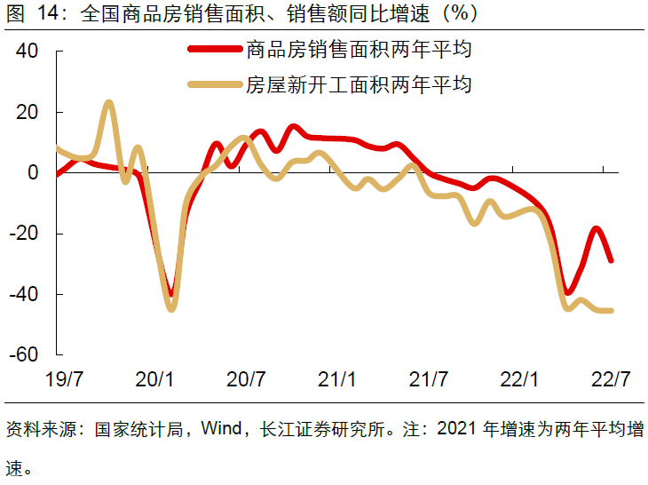 地产销售再度转弱,到位资金降幅仍大。7月全国商品房销售面积同比降幅下探至28.9%,销售额同比降幅下探至28.2%,主要缘于居民对期房保交楼的疑虑较重,使得现有“一城一策”实际释放的需求较为有限。从资金来看,1-7月,房企到位资金累计降幅扩大至25.4%,房企资金短缺问题仍较为突出。![]()