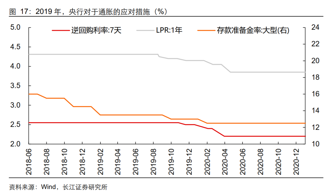 考虑到本轮通胀是结构性通胀,因此央行认为“物价形势总体可控”,更加关注国内经济下行压力,因此整体维持偏松的货币政策,先后多次降准、下调LPR、降低7天逆回购操作利率等。