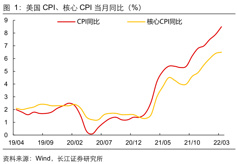 2022年4月12日,美国劳工部统计局公布3月美国CPI数据:美国3月CPI同比增加8.5%, 前值7.9%,市场预期8.4%;核心CPI同比增6.5%, 前值6.4%,市场预期6.6%。