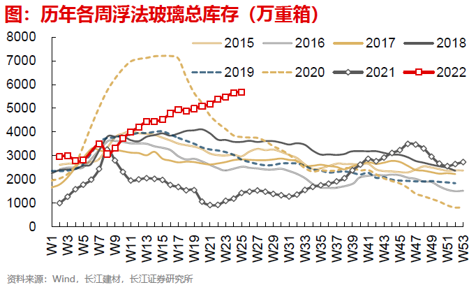 玻璃:下游竣工需求持续偏弱,降价促销行为增多。与钢材、水泥面临的环境相似,雨热天气交替持续影响地产竣工,玻璃需求同样偏弱。在供给变化不大的背景下,需求偏弱使得浮法玻璃库存持续逆季节性积累。从企业角度出发,为保证一定产销,且尽可能缓解库存压力,以价换量行为增多,带动玻璃价格持续回落。降价促销使得企业盈利能力持续下滑,玻璃单吨盈利已降至历年同期较低水平。
