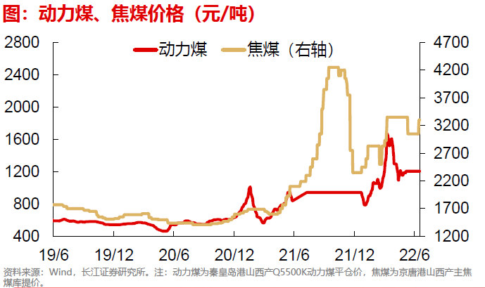 煤炭:动力煤、焦煤价格上涨,动力煤拉运量回升。动力煤方面,迎峰度夏日压力逐周升高,带动电厂补库需求走强,尽管秦港动力煤价格在稳价政策下保持平稳,但广州港动力煤价格在产地价格走高的背景下已连续三周抬升。在供给方面,尽管秦港煤炭铁路调入量持续回升,但需求更强使得秦港库存续降。焦煤方面,焦化厂开工率回升带动焦煤价格小幅反弹,但近期钢材产销情况出现转弱趋势,焦煤港口库存也自低位回升,未来焦煤价格承压概率较大。