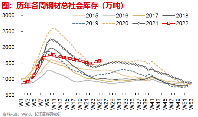 总结与展望:6月以来,终端需求持续转好,而生产仍是喜忧参半。6月第3周,面对去库压力,建筑链行业选择分化,海外大宗则受到加息影响,价格回落。具体来看:1)终端需求持续向好:上周地产单周销量增速由负转正,6月前19天乘用车销量增速转正。2)生产修复偏慢:汽车生产保持相对高位,发电耗煤降幅扩大,高炉开工率回落,水泥、纺服下游低位小幅反弹。3)大宗走弱,联储加息使得海外大宗价格回落,国内除煤炭外生资价格普遍回落。4)下游库存去化更为顺利,商品房库存快速回落,而钢材、玻璃、涤纶POY库存持续积累。当前摆在上游原材料企业面前最重要的问题是:如何去化行业高库存?强预期弱现实持续演绎,使得4月起,库存就一直高位积累。就上周来看,不同的行业选择了不同的去库路径:钢铁行业,尤其是民营钢企,普遍采取减产,并有意在钢价走低的环境下通过反向购入社会库存的方式保证未来销售;建材行业中的部分企业,则采取了降价促销的方法,试图抢占更大市占率。减产和降价在逻辑上均有助于库存去化,但效果仍待观察。