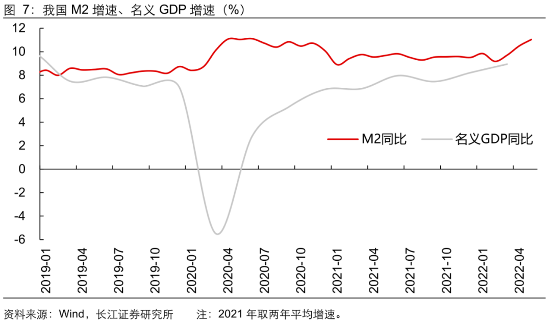 本轮疫情以来,我国M2增速与名义GDP增速基本匹配,从总量层面稳住了物价。疫情以来,我国货币仅小幅扩张,M2增速始终与名义GDP增速匹配,基本保持了2020年5月央行一季度货政报告中提出的“广义货币(M2)和社会融资规模增速要与国内生产总值(GDP)名义增速基本匹配并略高”,因此物价并未出现大幅波动。![]()
