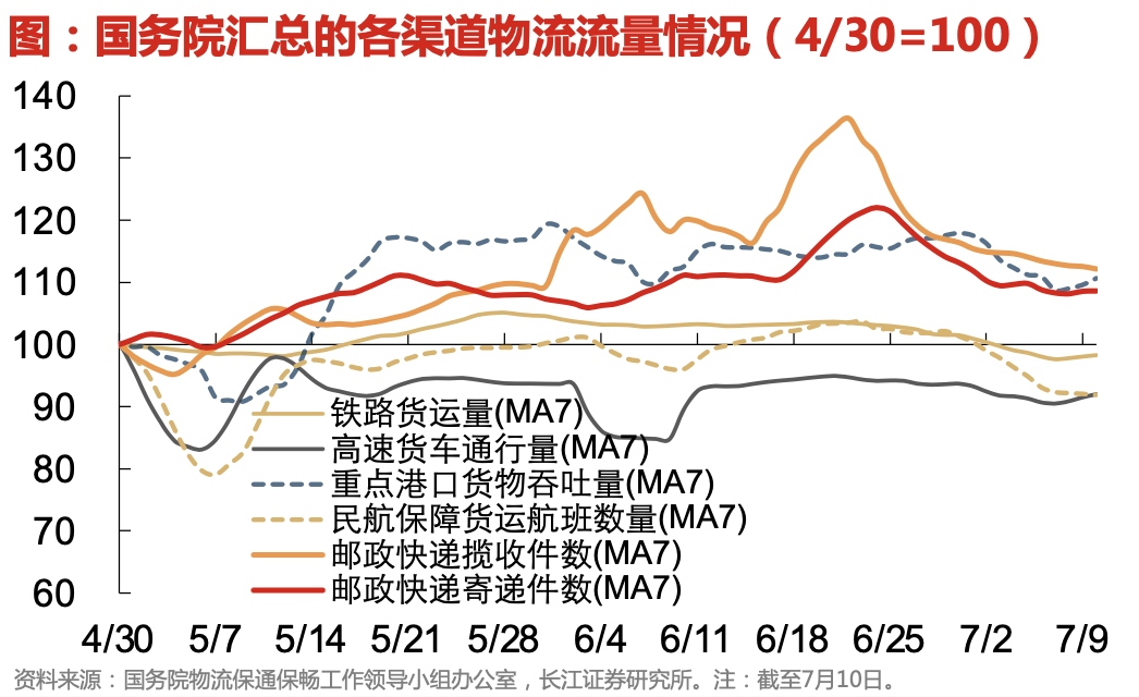 需求:边际减弱。【地产】7月前10天,30城地产销量同比降幅扩大,单周销量环比走弱。【乘用车】7月前10天,乘用车零售、批发销量增速回落,但仍为正增长。