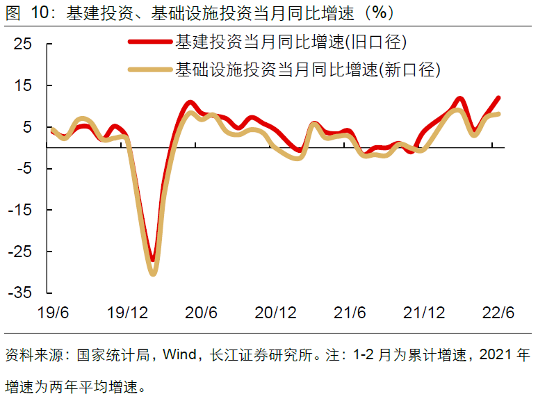 在专项债积极发行的背景之下,基建投资发力加码。估算6月新旧口径基建同比增速分别回升至8.2%、12%。基建主要行业中,水利、电力投资发力明显,估算6月同比增速分别续升至18.1%、24.1%。但交运投资表现相对偏弱,估算6月同比增速由正转负至-1.2%。