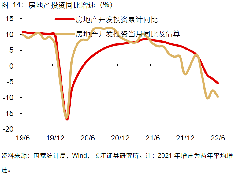 地产拖累投资增速,实物量数据再度转弱。估算6月房地产投资同比降幅扩大至9.7%,且相关数据全线走弱。一方面,6月全国土地购置面积同比降幅扩大至52.8%;另一方面,新开工面积、施工面积、竣工面积降幅分别扩大至44.9%、48.1%、40.7%。