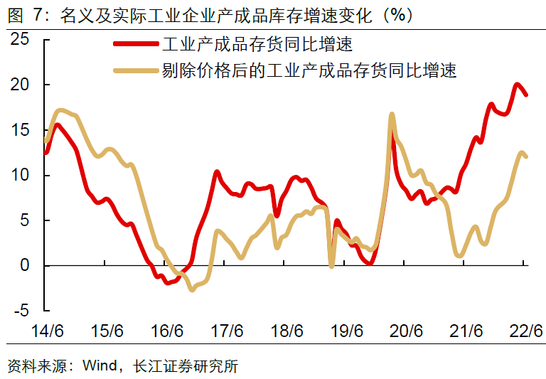 从产销情况来看,6月末产成品库存周转天数回落至18.4%,库存增速回落至18.9%,库销比回落至48.4%,指向复工复产带动企业库存去化。但也需要注意到,当前工业企业周转效率仍普遍低于历年同期均值,库存去化难度仍高。
