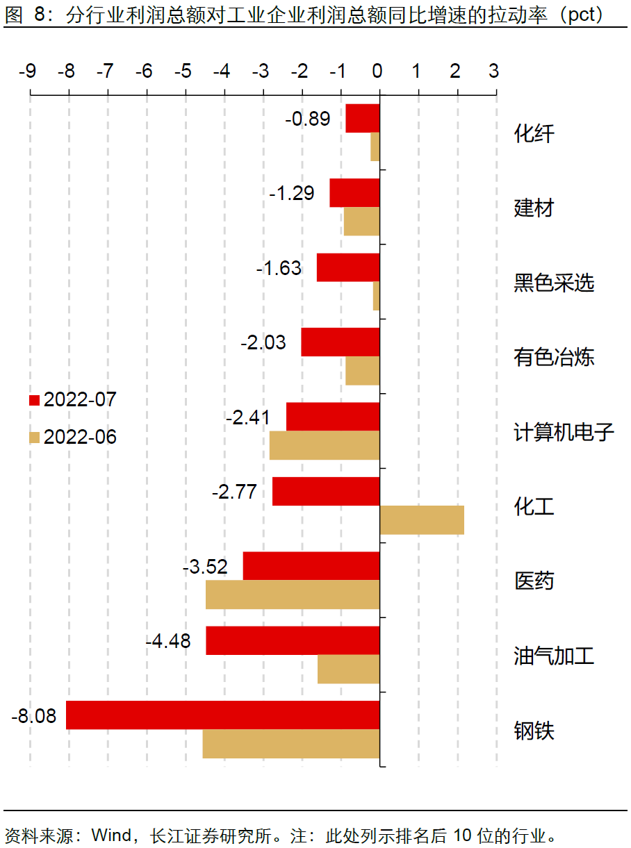 从各行业盈利对整体工业企业盈利的拉动力来看,上游能源品价格下跌带动电力热力等公用事业行业盈利拉动力抬升,而钢材等原材料下跌带动汽车、通用设备、专用设备等装备加工类行业盈利拉动力抬升。从7月数据来看,工业企业盈利再分配进程已初步启动,但还未充分演绎。
