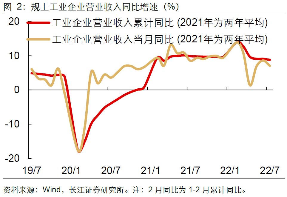 我们在前期报告中曾指出,企业为避免市场份额下降,在去库存阶段往往先降价、后减产,其结果是行业利润空间进一步压缩、加速出清。7月工业企业利润总额同比增速下滑转负至-13.4%,不仅营业收入增速小幅回落至7.1%,营收利润率更是骤降至5.58%,后者意味着“内卷”式的降价去库存已经开始。需求羸弱的客观环境,叠加企业降价的主动选择,将使得企业盈利持续承压。从历史经验来看,主动去库存开启后,盈利增速将承受1-2个季度的下行压力。