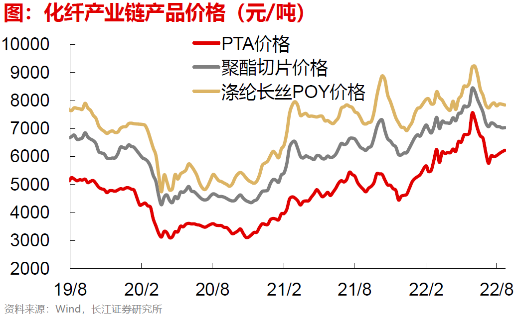 化工:限电约束放松促进产销回暖,库存边际去化。从需求角度看,高温限电解除后,纺服链下游企业积极开工赶单。尽管江浙织机开工率明显回升,但下游需求转好快于上游供给回升,带动涤纶长丝库存去化。同时,在供给端,国际原油油价再现震荡趋势,使得产业链产品价格波动放大,上周化工纺服链偏上游环节产品价格回升,涤纶长丝价格因去库压力较大而持续承压。(向右滑动查看更多,PC端用户请在浏览器中滑动阅读)