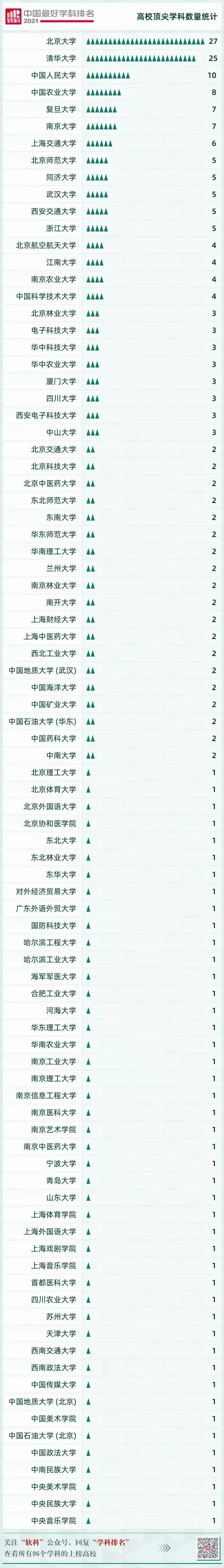全国顶尖学科数量排行榜