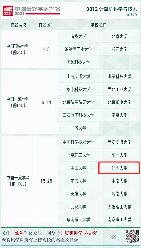 ▲计算机科学与技术,深大2021排名20