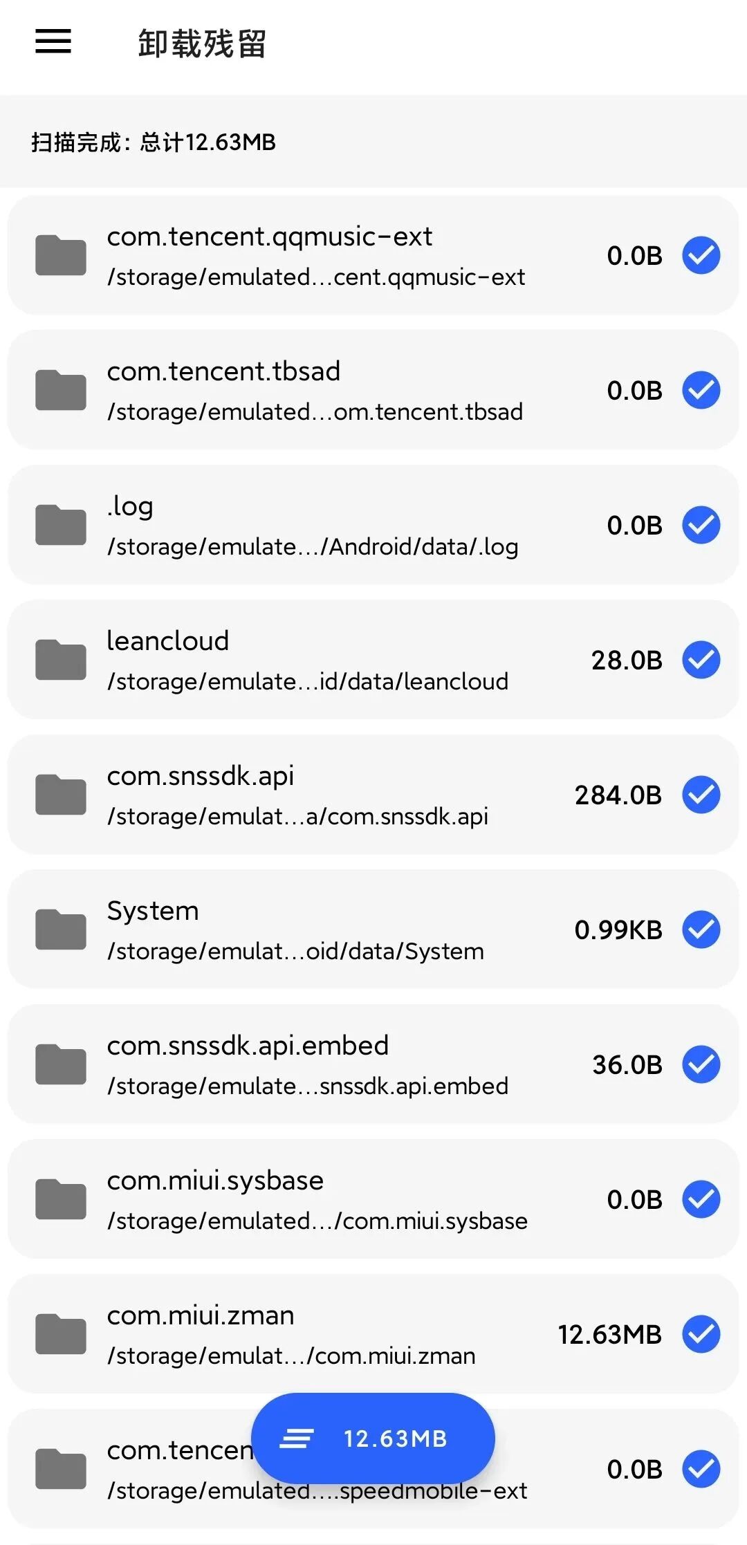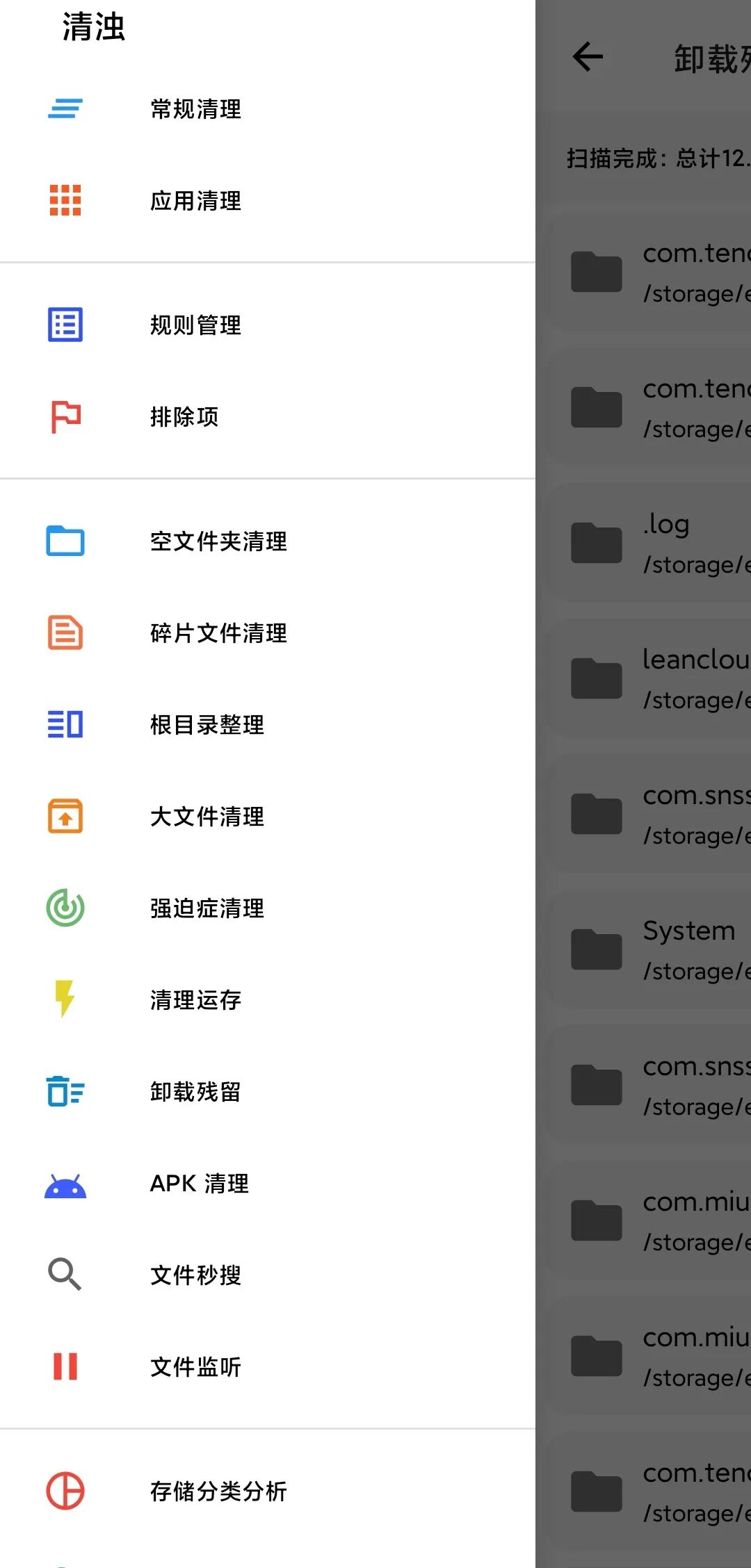 对于卸载残留这种老问题可以轻松解决,清浊可可以快速扫描残留在你 android/data 下的已经卸载应用的文件,主要针对一些软件卸载后可能还会残留一些日志文件、缓存文件等。