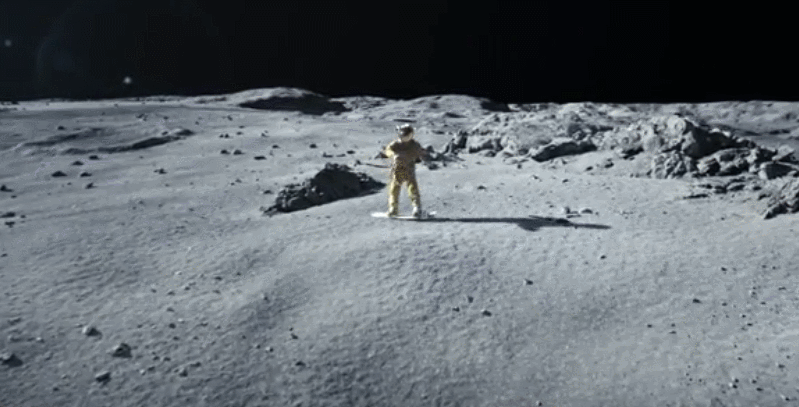 甚至还在月球表面练习滑板,摔的人仰马翻。