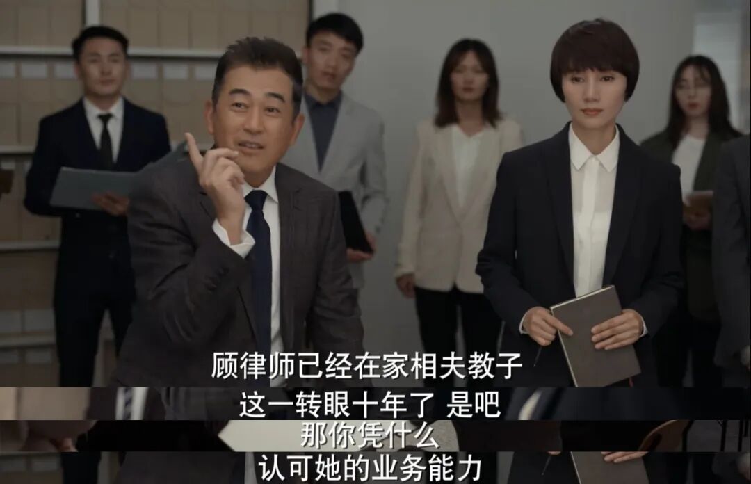 她原本以为自己有个幸福之家,不料从事律师的丈夫陷入罪案,并暴露出轨事实。一般都要大肆渲染女主角的悲痛处境,然后再安排闺蜜上演开导情节,紧接着就是公婆上门来劝解。10分钟之后,她就在大学同学的力荐下,来到律所工作。