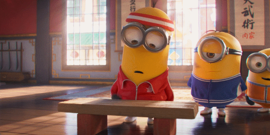 在周师傅的“严厉教导”下,小黄人“头悬梁锥刺骨”般的学会了流星锤、铁头功、梅花桩等绝世武功。