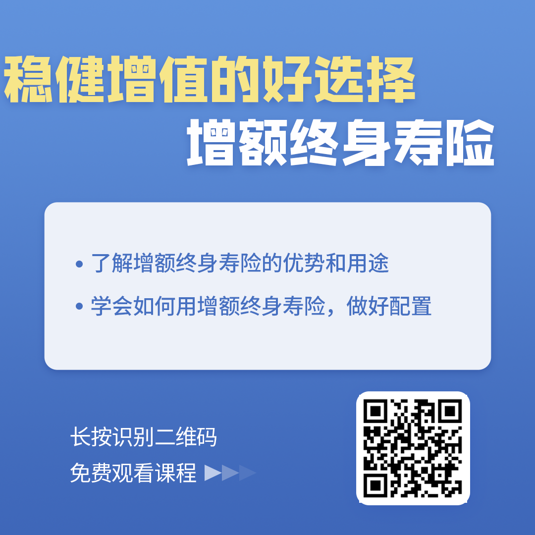 大家长按识别下方二维码,就能免费观看,也可以分享给周围想了解增额终身寿险的朋友。