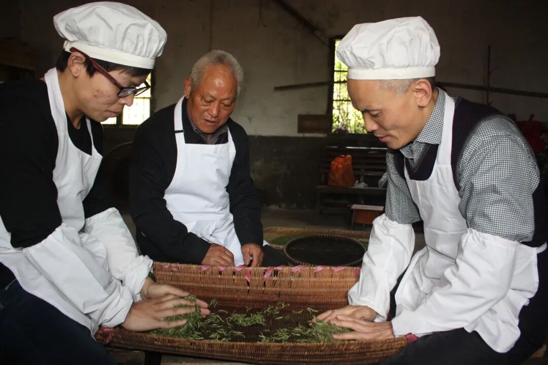 采摘过后,便是严谨的工序:采摘、摊放、杀青理条、初烘、摊凉、复烘、收灰干燥。