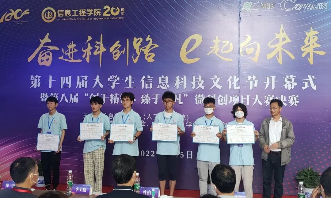 ▲校党委书记吕红梅老师,院长李斌老师为本届大学生信息科技文化节指导老师颁发聘书
