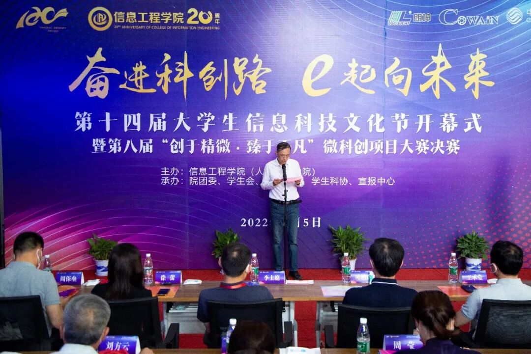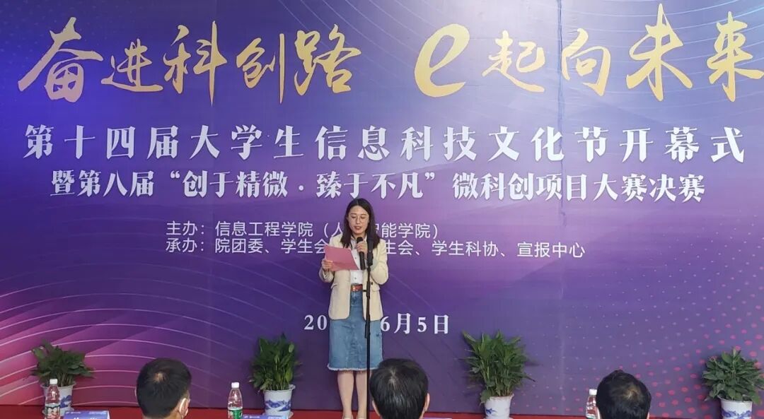 ▲院长李斌致辞宣布我院第十四届大学生信息科技文化节开幕