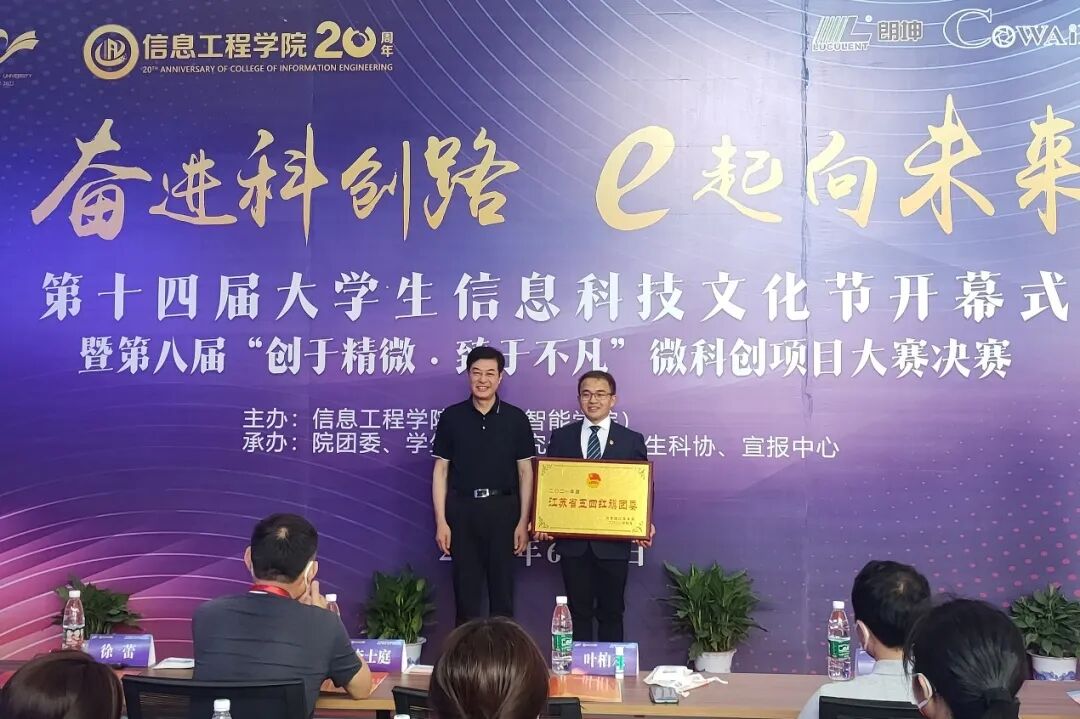 ▲校党委副书记叶柏森老师为我院团委颁发江苏省五四红旗团委称号