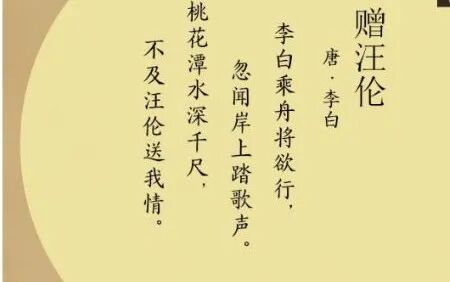 桃花潭水深千尺,不及汪伦送我情。