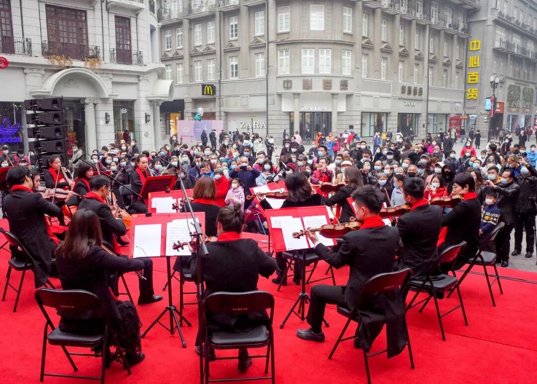 ▲今年大年初一,江汉路步行街举行迎新春快闪活动。张畅摄